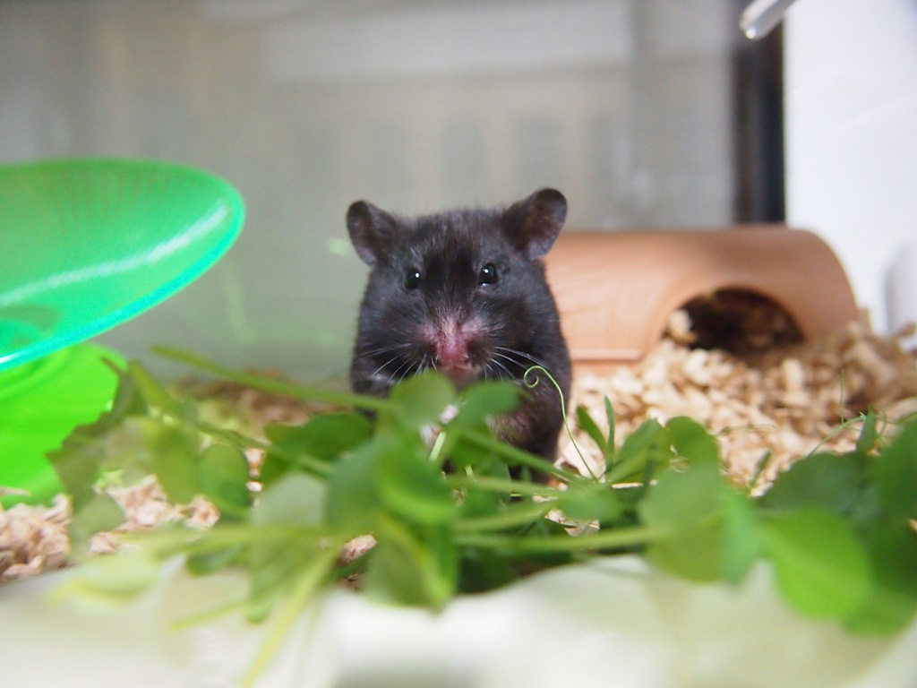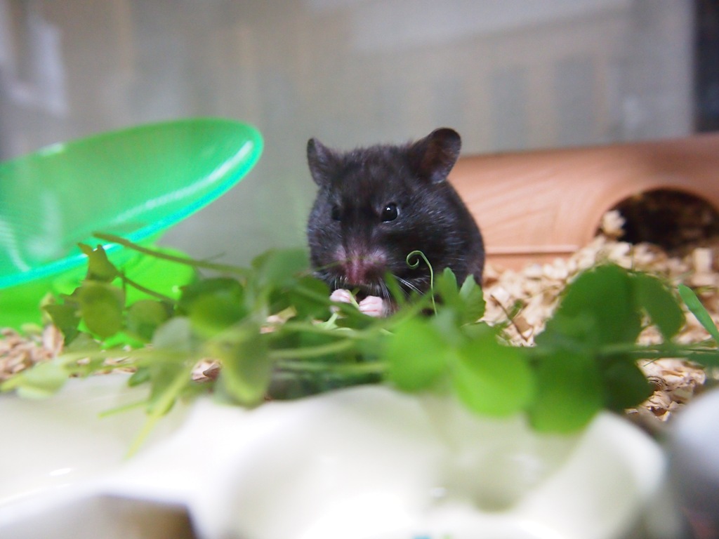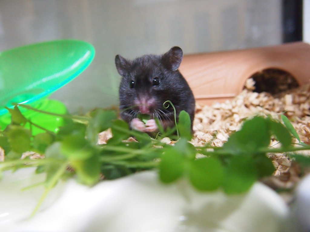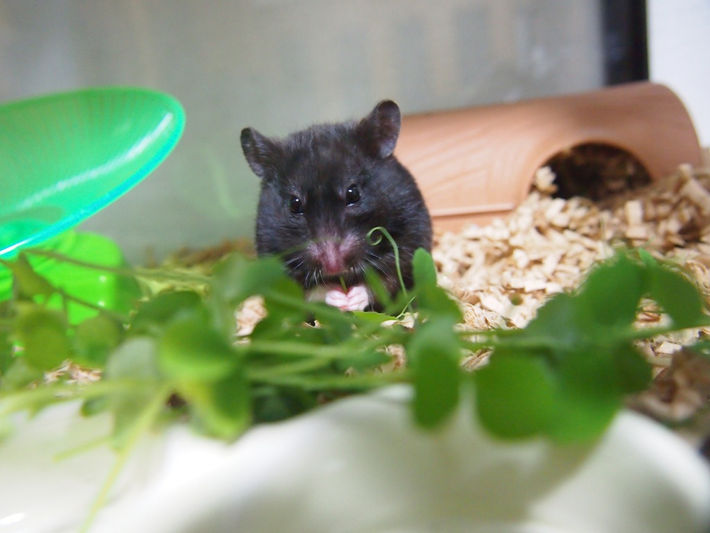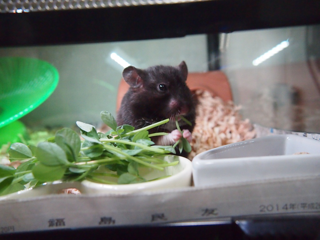 豆苗食べてるとこを、スマホで撮ってみました。