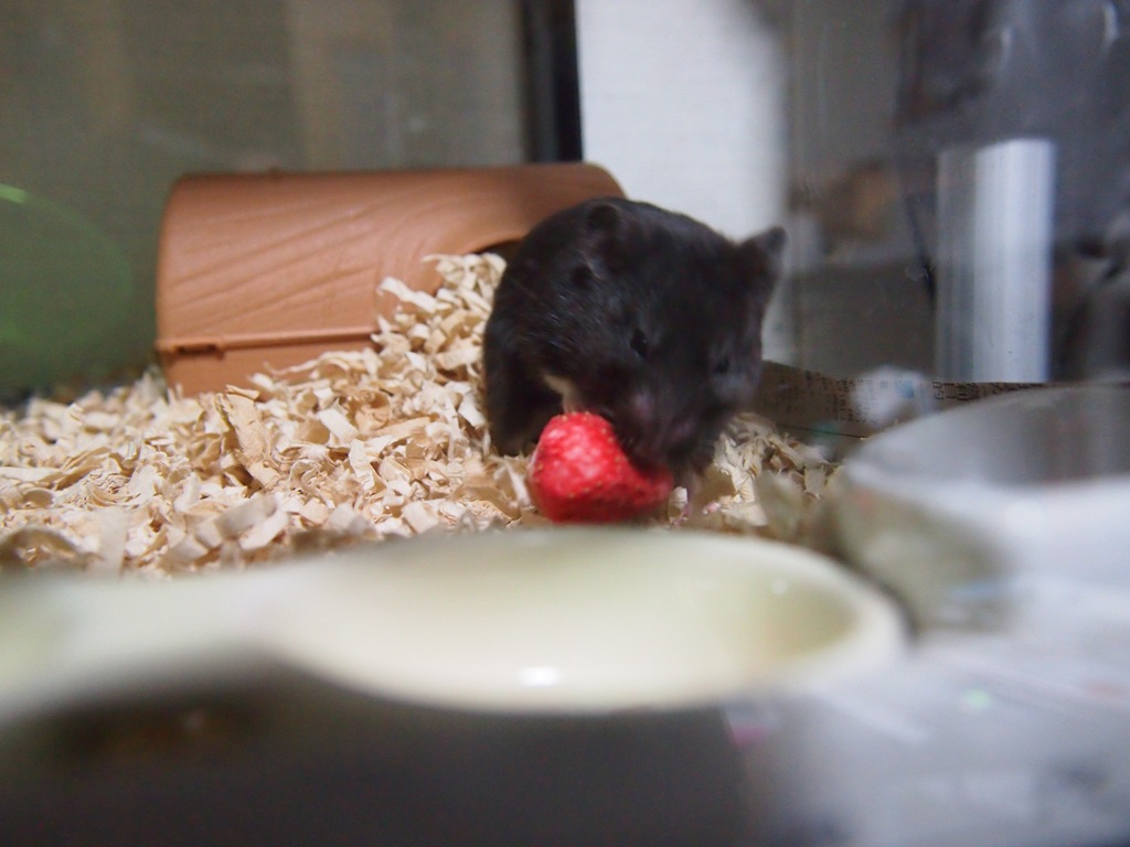 フリーズドライのいちごの前で、しばしとまどうさくらちゃんw