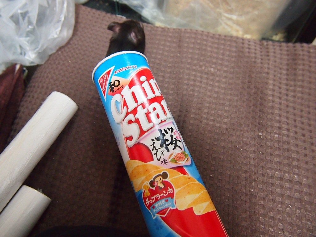 入ってるのは、チップスターの筒ですww
