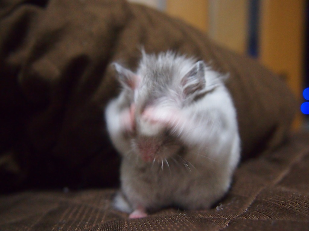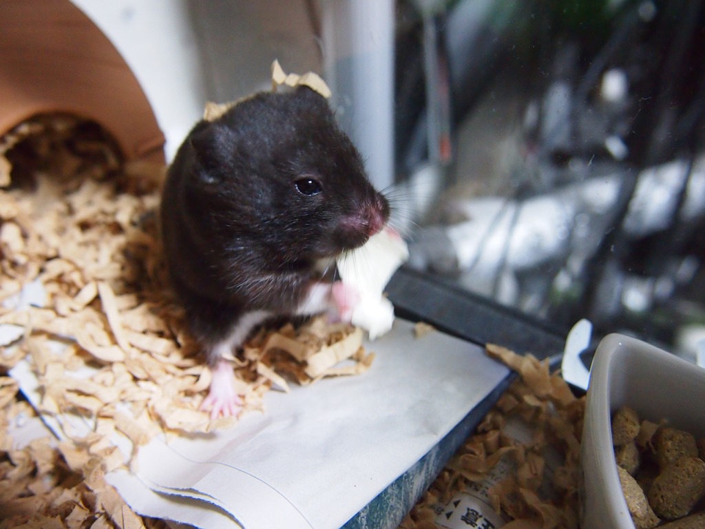 飼い主の部屋で飼ってるんで、部屋で作業等あって明るくしてないといけないときは、夜になると黒い画用紙で覆ってあげたりします。